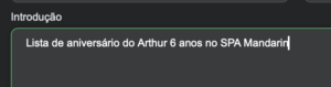 - Nas observações acrescentar a idade da criança e local da festa;
